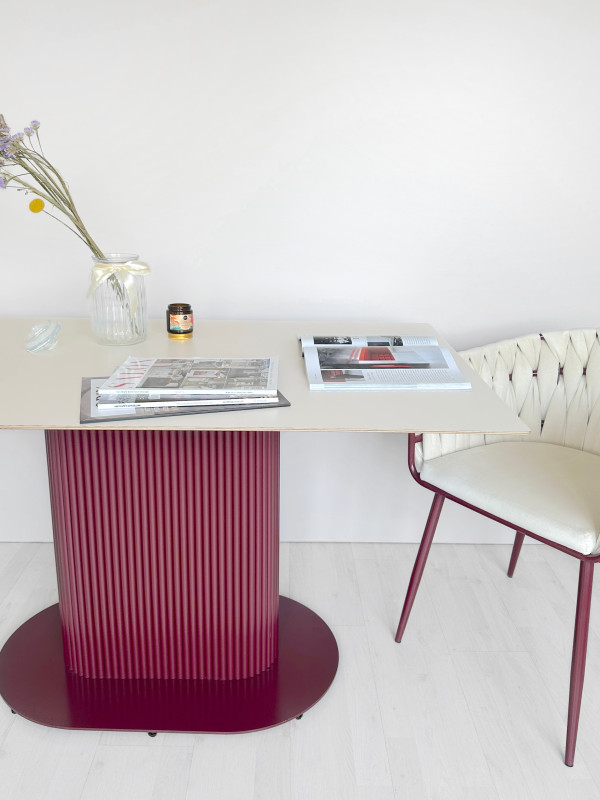 Широкое подстолье из металла с мощным основанием.